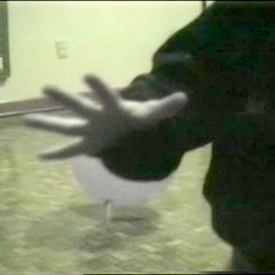 A young boy tries to fix a leaking jet pack Halloween costume with dry ice in it in a garage and it explodes.