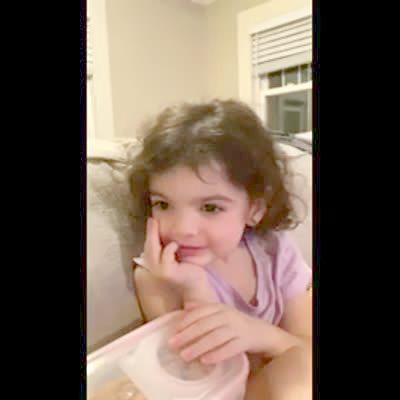 A man teaches his tot girl how to say "yogurt," but she repeatedly pronounces it as "work it."