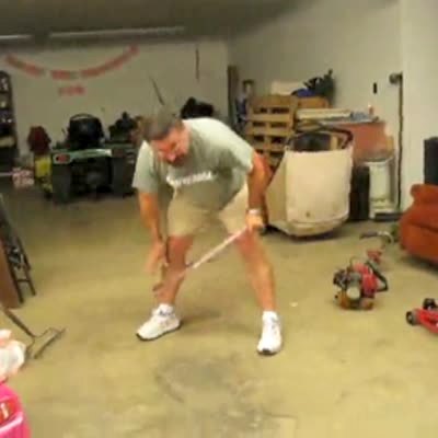 THE GOLF LESSON Golf - Golf instructor whacked in knee by student