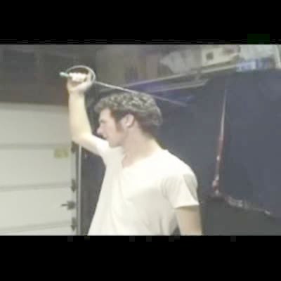 Teen girl tries to do a cheer in the basement, she knocks down a light bulb, which hits her in the head.