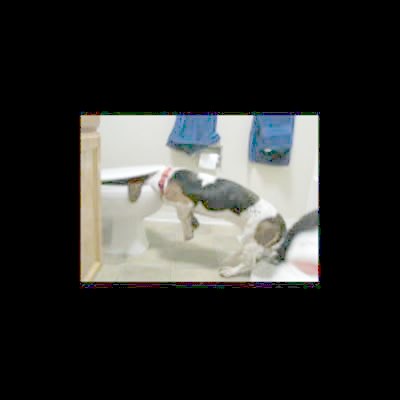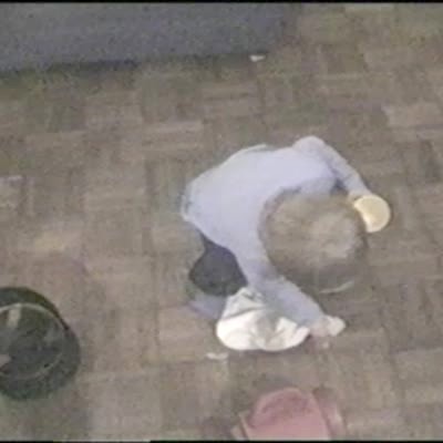 The sound of water can be heard off screen as it hits the carpet in a young girl's bedroom when she cracks a fish tank with her foot while she does a somersault. The lights go dark in the room as she leaves to tell her mother what happened.