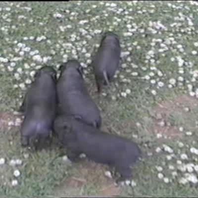 4 baby pigs wiggle their butts incessantly (11-113, 1324M)