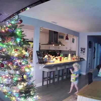 "Camera Shy Little Guy" A tot boy gets caught while he eats chocolate in a living room. A man speaks to him via the security camera and the tot walks over and slowly turns the camera towards the wall. Security camera.