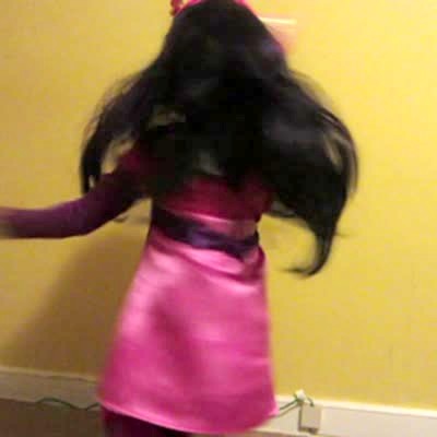 "Football Player And The Ballerina" Young girl dressed as a ballerina does a spin when mom asks for a ballet move. Boy dressed as football player chest bumps little girl when asked for a football move, girl cries. Halloween.