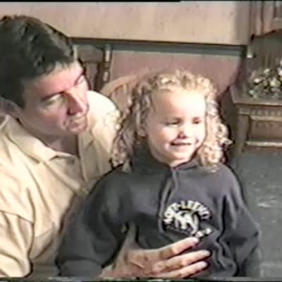 A tot girl says she ain't scared of nothing so her dad asks do snakes scare you and she leans back in her chair and says a little bit.