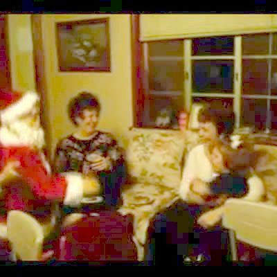 Santa comes to little girl's house; girl doesn't want him to come inside and cries. It's a life-size fake Santa statue / decoration. Christmas.