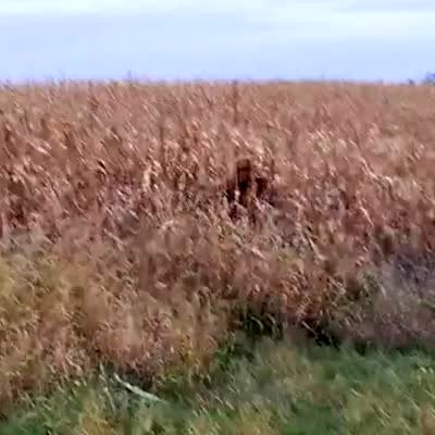 Kids scream on a hayride in a field when they see a man in a Sasquatch costume. He takes off the costume's head and a little girl stops screaming.