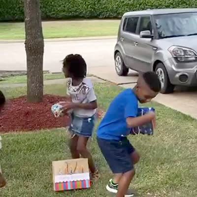 A young girl and boy open iPhones for their birthday and they cheer excitedly. Camera pans to another little girl who pouts because she didn't get one.