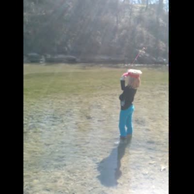 A little girl says "watch and learn" before accidentally throwing her fishing pole in a lake.