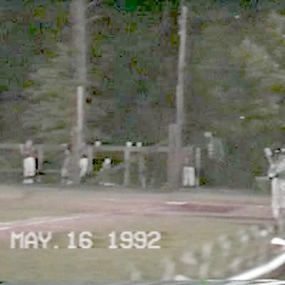 Man records little league baseball game, the batter hits the ball directly towards the camera and knocks it out of man's hands.