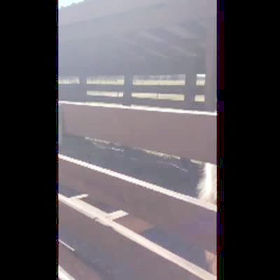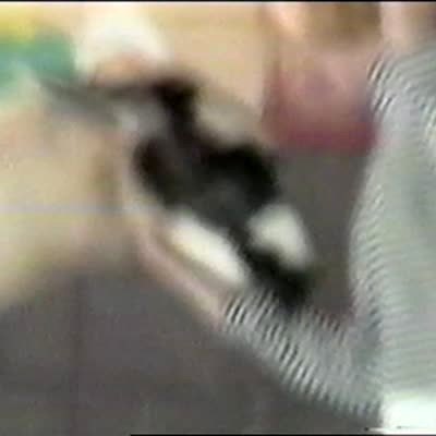 A llama sticks its head into the front seat of a car in a drive through zoo. It eats a piece of food out of a young girl's hand, then it spits all over a woman trying to pet it.She screams. Short tails.