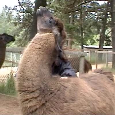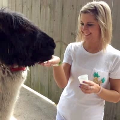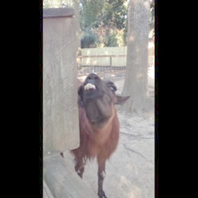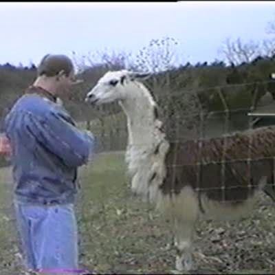"Lama Loogie" Llama eats poop and spits in woman's face twice.