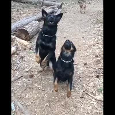 Two dogs try to catch the same ball in slow motion and their heads hit each other. AA: Dogs in Super Slo-mo