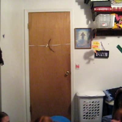 "Bathroom Breakout" A tot girl has locked herself in a bathroom, and she laughs and films herself as a man repeatedly slides the camera under the door. A woman tells her to unlock the door, then the man cheers when the girl listens and lets them into the bathroom.