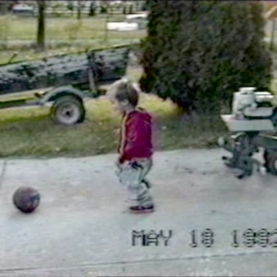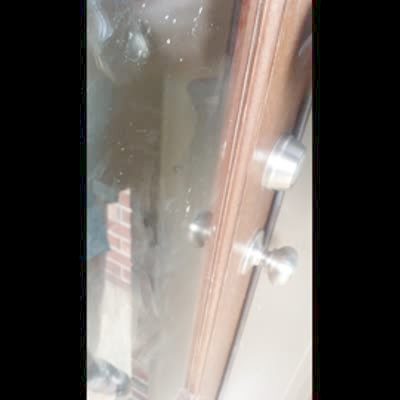A man outside sees his young son walk towards a sliding glass door so the man screams to scare him. The boy then locks the dad outside and the man begs to be let back inside. Security Footage.
