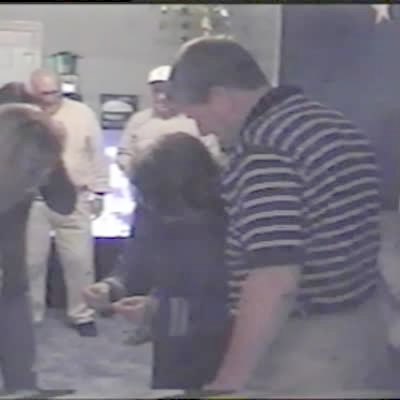A woman thinks she won five thousand dollars on a lottery ticket, but it is fake. She screams and jumps excitedly. A man tells her it is fake and her family laughs hysterically.