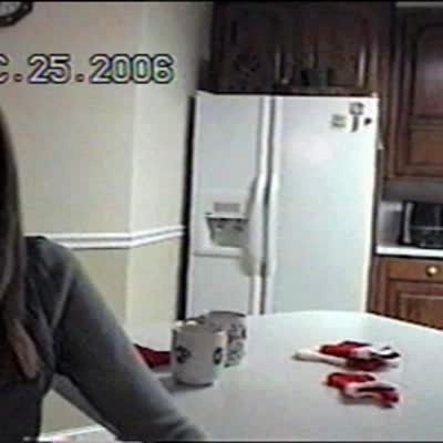 Woman in kitchen wins $10,000 on a fake lotto ticket. She pounds the floor and screams with joy, hugging everyone. She reads the fine print and says "Kimberly, I'm gonna kill you." Practical joke