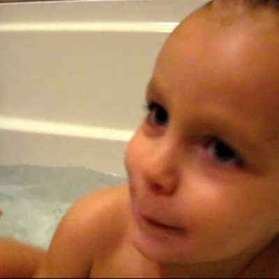 A young girl says "yes" as her parents ask if she likes different family members in the bathroom and when they ask if she likes her mom, the girl says "some days."