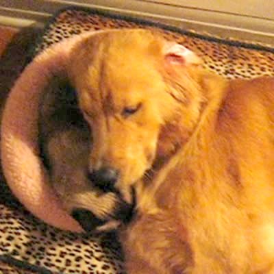 A German Shepherd dog whines and moans as a woman tells the dog that she loves her.
