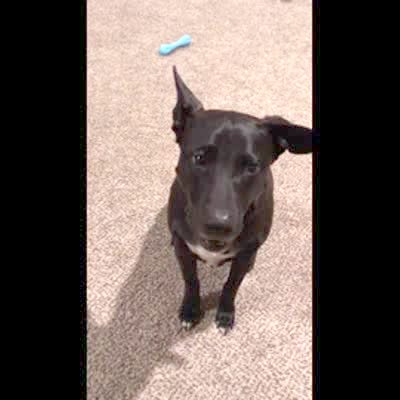 A man gets his dog to whine and it sounds like the dog says "I love you"