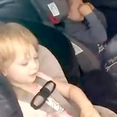 A tot girl yells "suck it up" to a tot boy who cries in the back seat of a car.