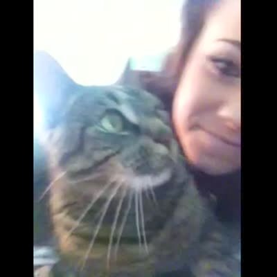 A teen girl poses for pictures with her cat indoors and says her cat loves taking pictures with her before the cat bites her hand and claws at her face.