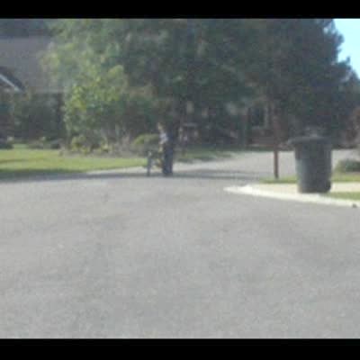 Three boys playing outside with their bikes. One boy at the end of a cul de sac lets his bike roll down the street to see how far it goes. The bike rides wildly down the street and turns. The bike runs into and hits a mailbox knocking the whole post over.
