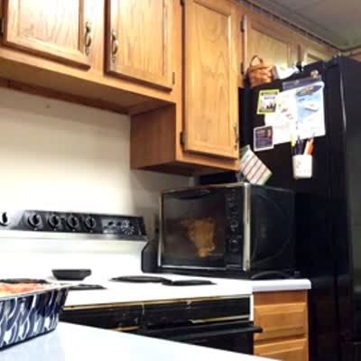 A man and a woman trick a senior woman into thinking that the silverware drawer can be opened and closed through voice activation. Finally, a young boy comes out from under the cupboard and reveals he was behind it.