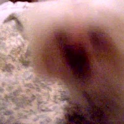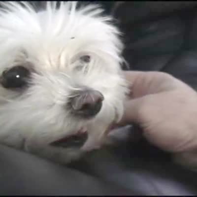 "Man's Breath Friend" Man sits next to small white dog on the bed. When man blows on dog's head, dog spins around and looks at him. Man turns his head away when dog looks. Teases dog.