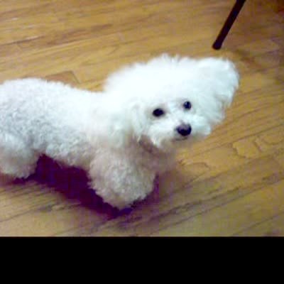 Small white Poodle dog has big poofy ears and flaps them like wings. Moves ears up and down. Funny visual.