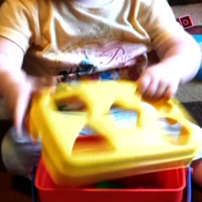 A girl tot figures out how to cheat a shape-matching puzzle.
