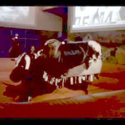 Animatronic dinosaur head butts man. At the Morristown museum.