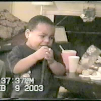 A baby girl cries into a microphone in the living room and her noises are auto-tuned and off-camera adults laugh.