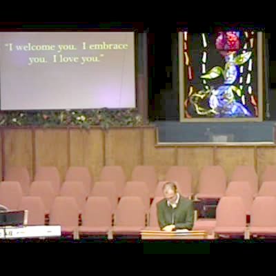 Man in church show tries to switch on his microphone but it looks like he is playing with his crotch.