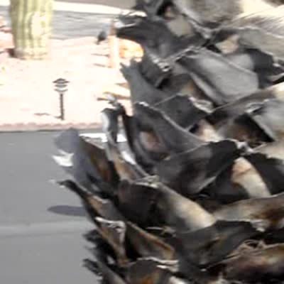 A glass patio table shatters when an umbrella shade falls over as a man puts it back into a hole in the middle of it.