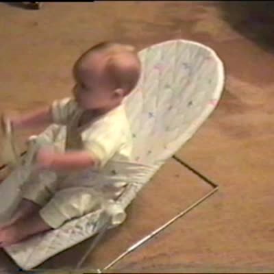 THE BOUNCING BABY CHAIR Baby in bouncy seat exercises in rhythm to exercise tape on TV.