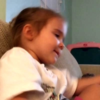 18 month old tot girl falls over when dad asks "what are they doing on america's funniest home videos."