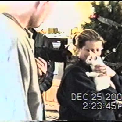 Woman introduces small cat to a mini dog. Cat suddenly gets angry & starts hissing & scratching woman's head.