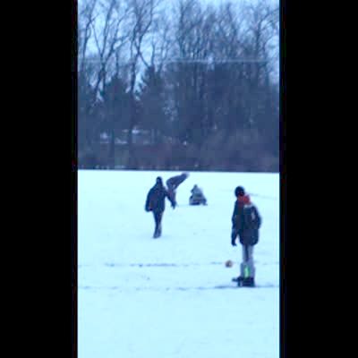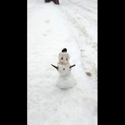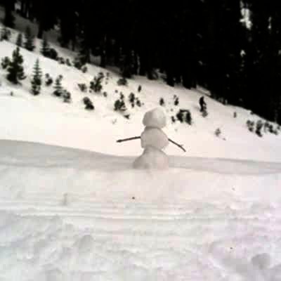 A snowman is on screen outdoors and looks to be full size but then a foot comes down and steps on it to destroy it, since it was actually small. AA: destroy a snowman
