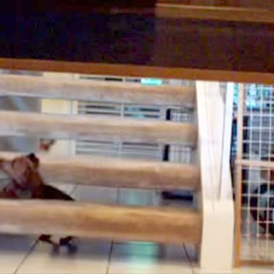 Two young boys jump on a top bunk when the bed breaks and falls onto the bottom bunk. Security footage. Music rights not cleared.