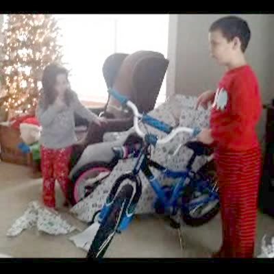 A boy opens a Christmas present in the living room and gets confused because the bike that he got is the same as the bike he already has. His dad realizes that he brought up the wrong bike from the garage to give as a present.