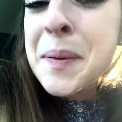 A woman talks to the camera about her new car and realizes that she parked in a driveway to a house that is not hers.