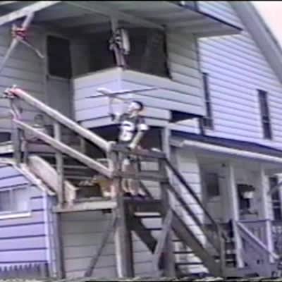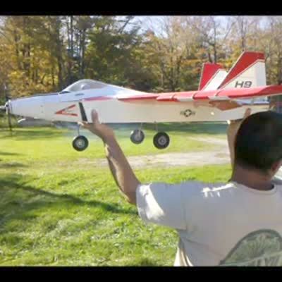Dog chases remote control model airplane. Man goes to catch the plane before the dog gets it but he trips and falls. The glider then flies at the cameraman who yells "Goddammit" and falls over.