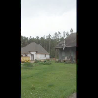A man outside tries to throw a foam airplane above his family's head but he accidentally throws it right at a woman's head. The man apologizes and hugs the woman.