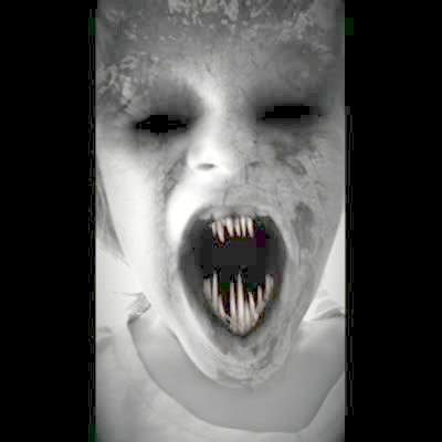 A young girl records a video of herself with a filter that makes her a scary monster and then a man screams off screen and she gets scared. Snapchat