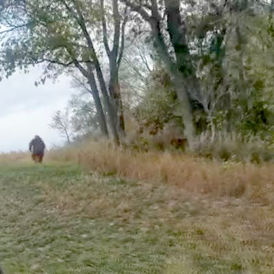 As a practical joke, a man jumps out of a vehicle in a corn field, and chases another man dressed as Sasquatch who emerges from the forest. The Sasquatch pushes the man onto the ground as children scream and yell and he disappears into the field.