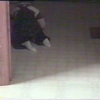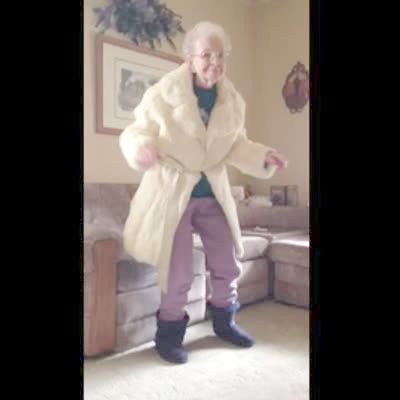 Montage of older woman getting scared / startled in and around the house, she says "ooh" each time. Clip has many cuts & edits, practical joke.