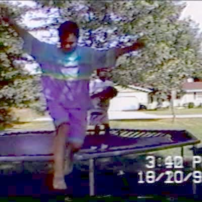 Bonehead Kid. Boy on trampoline sinks basket and breaks backboard. (montage) basketball