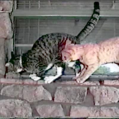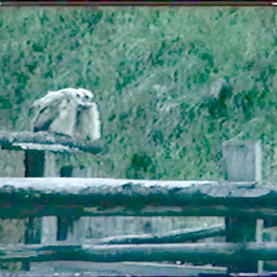 2 owls sit on a fence and look like they're dancing together / moving to music. Short clip. Good for montage.