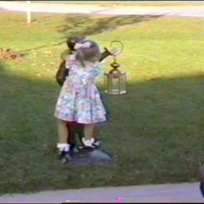 Making Out. Little girl kisses lawn jockey statue. (kissing montage)